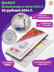 25 рублей Олимпиада в Сочи 2014 "Факел" в цвете в официальном блистере с голограммой.