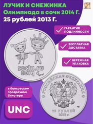 25 рублей Олимпиада Сочи 2013 "Лучик и Снежинка" в цвете в официальном блистере с голограммой.