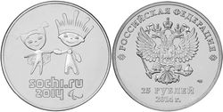 К событию зимних Олимпийских игр в Сочи были так же выпущены монеты номиналом 25 рублей в обычном и цветном исполнении.
