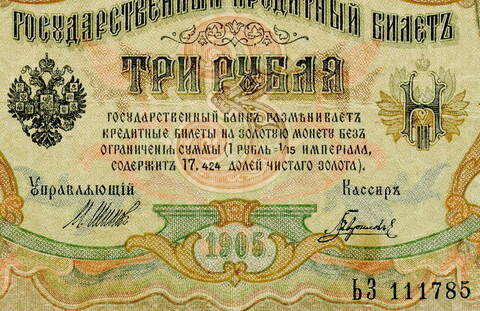 Кредитный билет 3 рубля 1905 года (кассиры случайные) XF