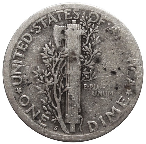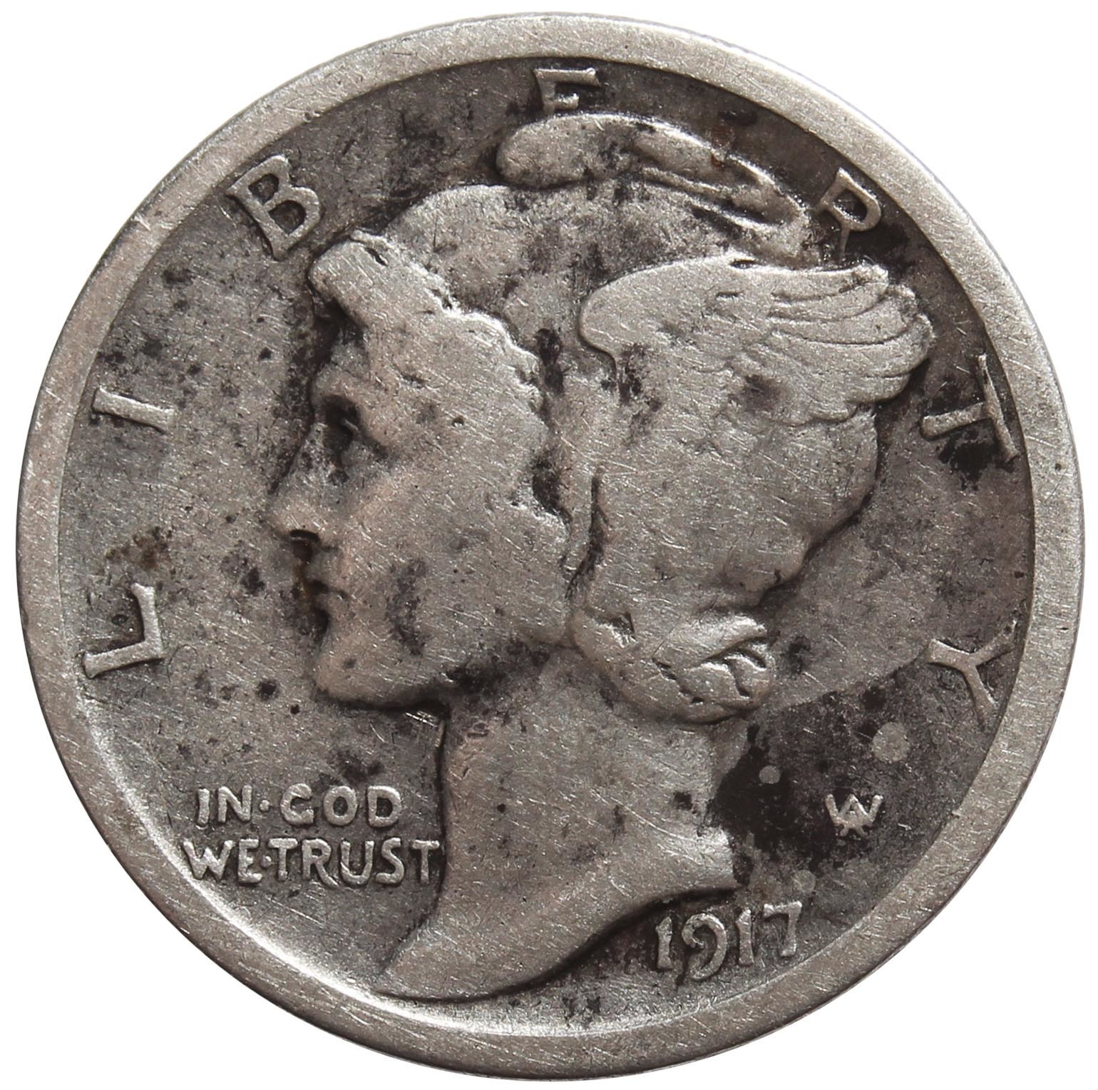 1 дайм (10 центов) 1917 г. США (S) Серебро (Меркурий)