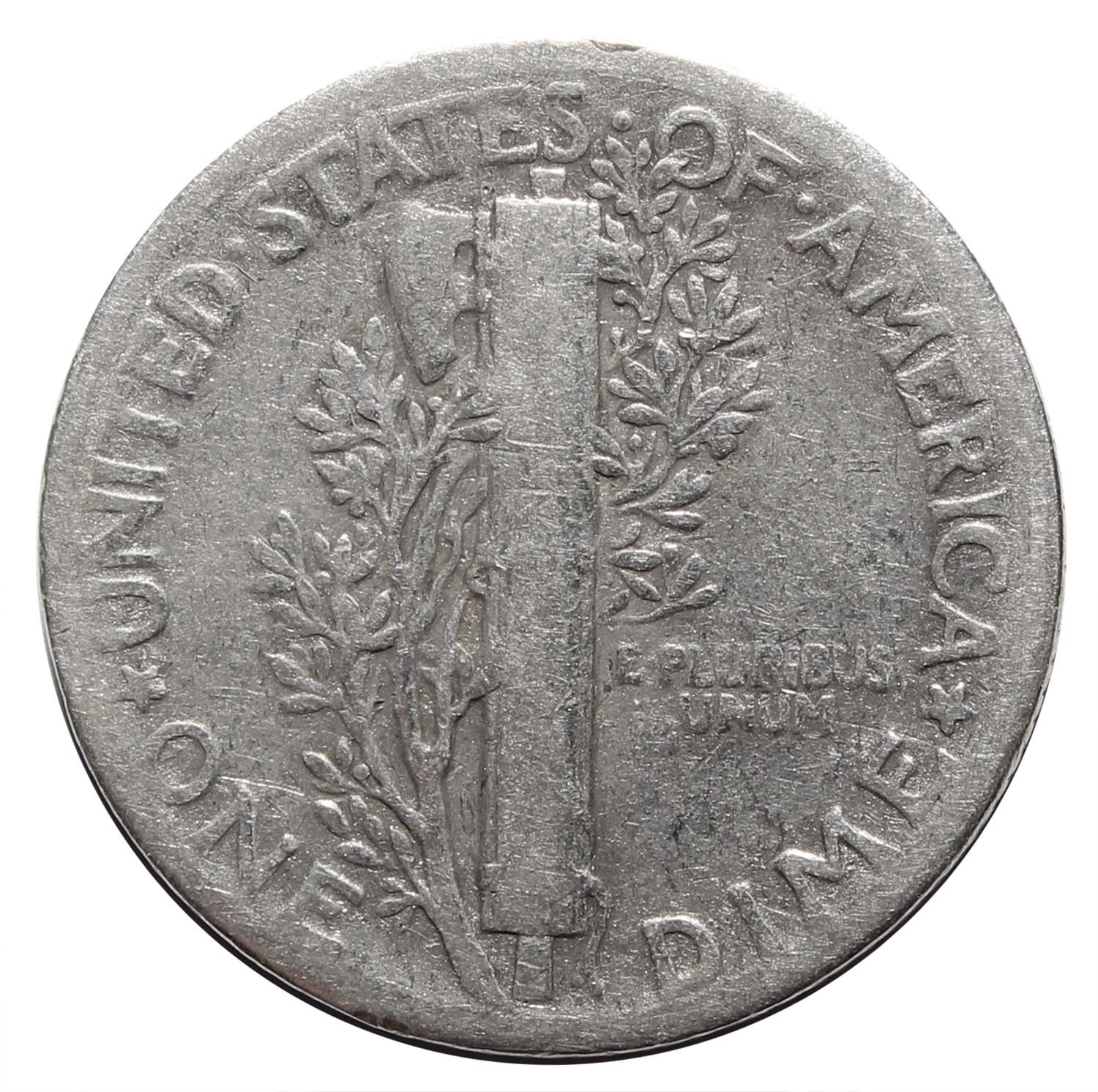 Реверс: Изображены: пучок фасций, клинок топора и 2 оливковые ветви. Надписи: E • PLURIBUS UNUM / UNITED • STATES • OF • AMERICA / * ONE DIME *.