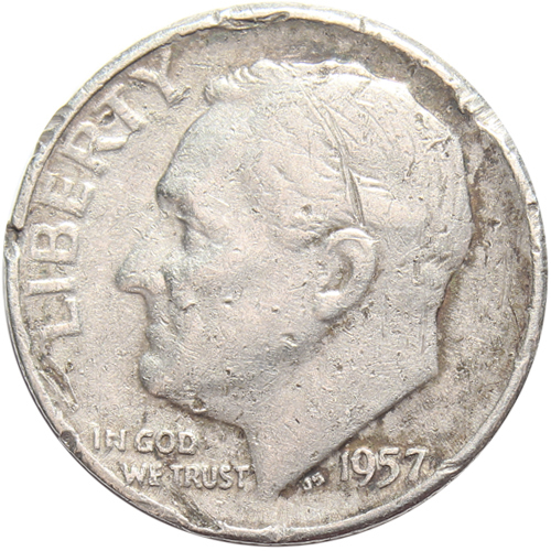 Аверс: Портрет 32-го президента США Франклина Рузвельта влево. Надписи: LIBERTY / IN GOD WE TRUST / JS / 1957.