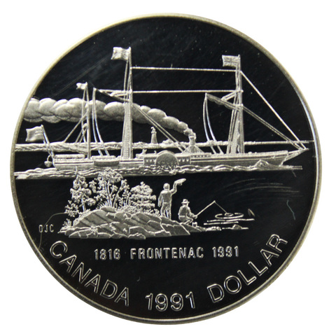 1 доллар. 175 лет пароход "Фронтанек". В футляре. Канада. 1991 г.