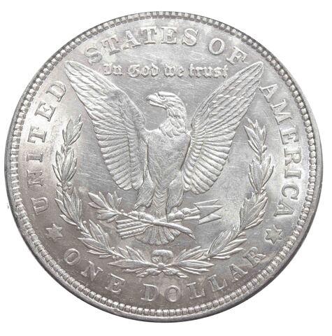 Реверс: Белоголовый орлан, геральдическое изображение Североамериканских Соединенных Штатов Америки, держит в лапах оливковую ветвь и пучок стрел, вокруг венок из оливковых ветвей, под узлом венка знак монетного двора (отсутствует для монет, отчеканенных в Филадельфии). Над орлом надпись готическим шрифтом «In God We Trust». Круговая надпись: вверху «United States of America», внизу «One Dollar».