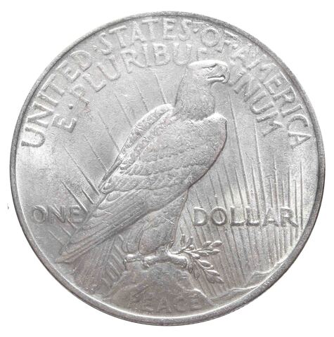 Мирный доллар — серебряная монета США номиналом в 1 доллар. Выпускалась в 1921-1928, 1934-1935 и 1964 годах. Изначально планировалось отчеканить памятную монету в честь окончания Первой мировой войны. Своим названием обязана слову "PEACE" в нижней части реверса.