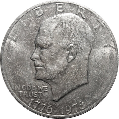 Доллар США, выпущенный к 200-летию Декларации независимости Соединенных Штатов. Изображены Колокол Свободы и Луна, где побывали американские астронавты, на другой стороне - президент Дуайт Эйзенхауэр.