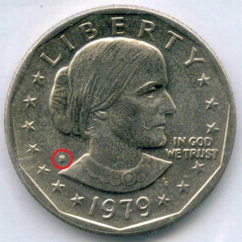 1 доллар 1979 год (S). США. Сьюзен Энтони. Медь с медно-никелевым покрытием, диаметр 26.5 мм в родной запайке