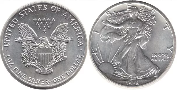 1 Доллар 1989 ШАГАЮЩАЯ Свобода США УНЦИЯ СЕРЕБРО