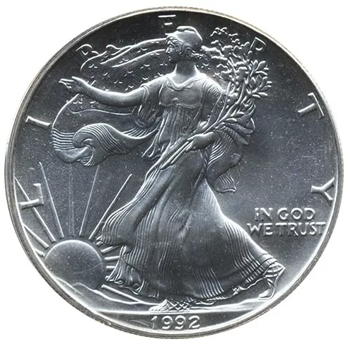 1 ДОЛЛАР 1992 года. СЕРЕБРО. Шагающая свобода. США.