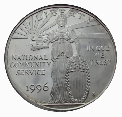 1 доллар 1996 год. Корпорация государственной и муниципальной службы. США в буклете. Серебро. PROOF