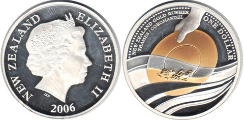 1 доллар 2006 год. Золотая лихорадка Добыча золота. Новая Зеландия. Серебро