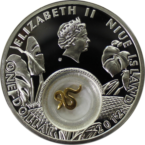 Реверс: Вверху – портрет Её Величества Королевы Елизаветы II. Над ним – полукруглая надпись: ELIZABETH II / NIUE ISLAND (Елизавета II / Остров Ниуэ). Ниже – вставка в виде филигранной змеи. Под портретом королевы с левой стороны – фирменный знак Монетного двора Польши (m/w). Снизу полукруглые надписи – ONE DOLAR (номинал 1 доллар), а также 2012 (год чеканки).