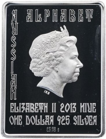 1 доллар 2013 год Русский алфавит Буква буки. Ниуэ. В буклете Серебро