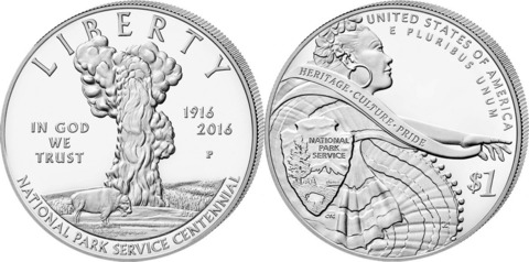 1 доллар 2015 год. США . 100 лет Службе национальных парков США Серебро. PROOF