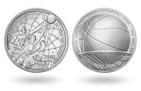 1 доллар 2020 Зал славы, Баскетбол, двор Р, Спорт, Серебро UNC