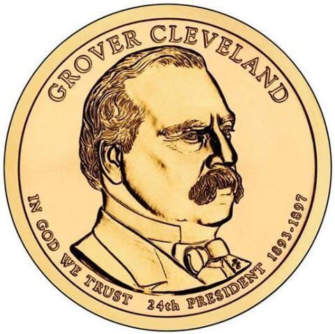 Стивен Гровер Кливленд (англ. Stephen Grover Cleveland, первым именем не пользовался; 18 марта 1837, Колдуэлл, штат Нью-Джерси — 24 июня 1908, Принстон, штат Нью-Джерси) — государственный деятель США. Единственный президент США, занимавший свой пост два срока с перерывом и соответственно получивший двойную нумерацию в списке президентов (в 1885—1889 годах, 22-й президент, и в 1893—1897 годах, 24-й президент), поэтому в серии памятных монет достоинством в 1 доллар в 2012 году выпущены две разные монеты с его изображениями. Он набрал большинство голосов избирателей на трёх выборах подряд (1884, 1888 и 1892), но во второй раз из-за особенностей американской избирательной системы в коллегии выборщиков больше голосов получил Бенджамин Гаррисон. Кливленд был также единственным президентом от Демократической партии, избиравшимся между 1860 и 1912 годами — в период полного господства республиканцев.