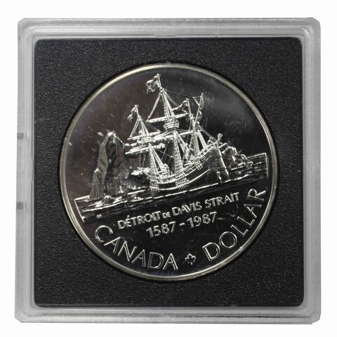 1 доллар. 400 лет открытию пролива Дейвиса. Канада. Серебро. 1987 год. BrUNC