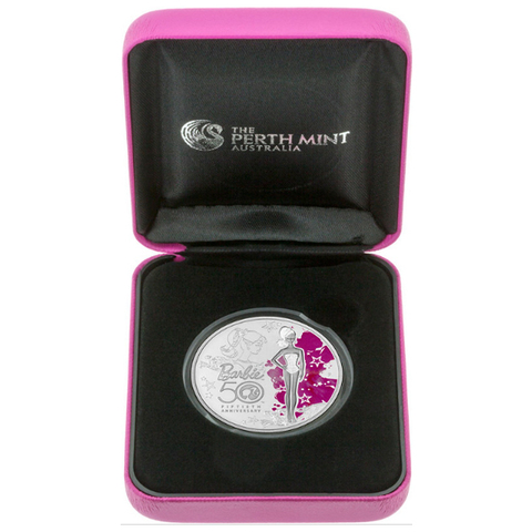 Монетный двор «Perth» празднует 50-летие Барби, одной из самых продаваемых и коллекционированных игрушек в мире. Серебряная монета 2009 года, выпущенная в Тувалу, описывает классический образ Барби на характерном для неё розовом фоне. В 1959 году в Нью-Йорке Барби была признана лучшей подружкой маленьких девочек всего мира. С каждым днем Барби становится все популярнее.