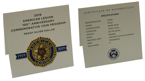1 доллар. Американский легион. 100 лет со дня основания. США. 2019 г. PROOF