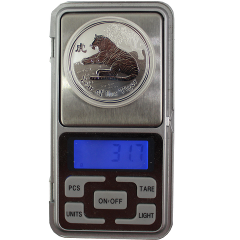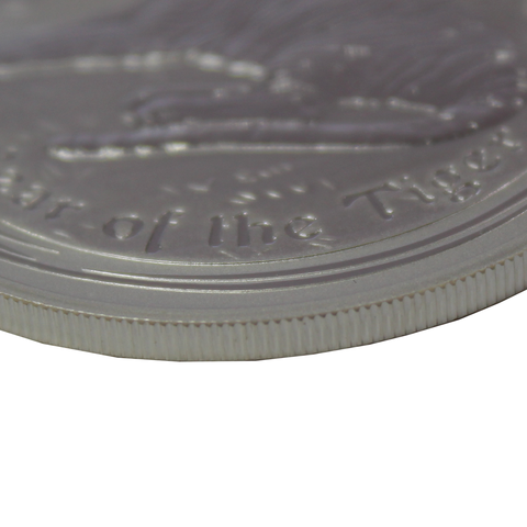 Реверс: изображен тигр на фоне природы. Слева выгравирован китайский иероглиф "Тигр". Внизу расположен текст "Year of the Tiger". Справа у дерева находится буква "Р", обозначающая Perth Mint.