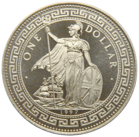 1 доллар. Корабль парусник Возвращение Гонконга Китаю Торговый доллар. Гонконг. 1997 год.