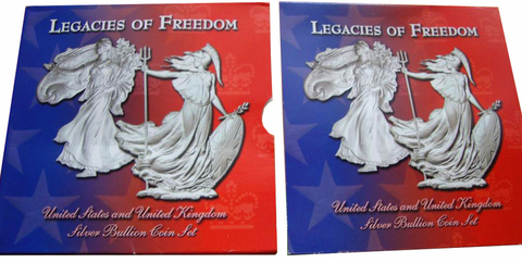 Набор из 2 монет 1 доллар. Шагающая свобода 2003 год. США и 2 фунта. Наследство свободы 2002 г. Великобритания