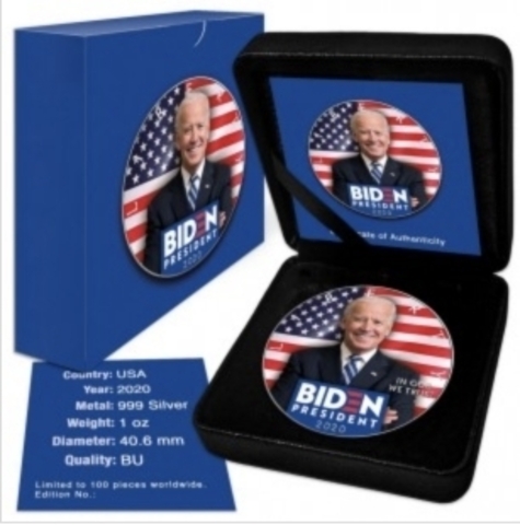 1 ДОЛЛАР США 2020. Свобода. Байден. Серебро 999пр. 31.1гр (цветная тампопечать)