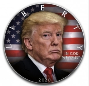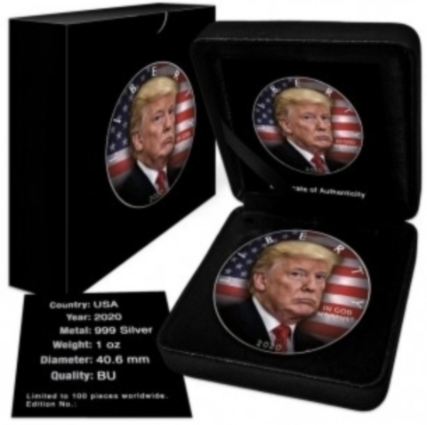 1 ДОЛЛАР США 2020. Свобода. ДОНАЛЬД ТРАМП . Серебро 999пр. 31.1гр (цветная тампопечать)