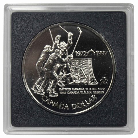 1 долларов. 25 лет Суперсерии СССР-Канада 1972. Канада. 1997 г. BrUNC Серебро в оригинальной квадрокапсуле