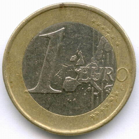 1 евро 2002 год (D). Германия. Регулярный выпуск. Тип 1. Биметалл VF