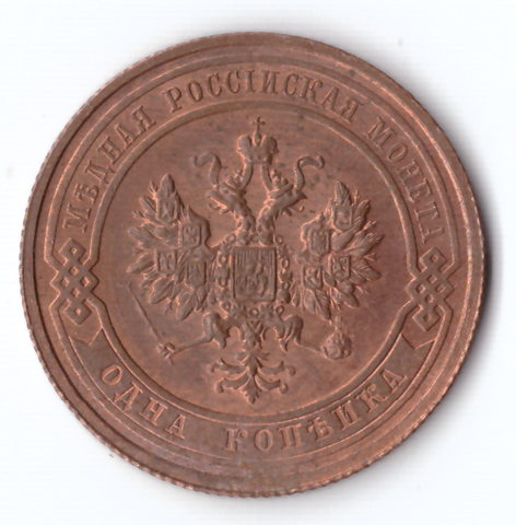 1 копейка 1915 Николай II XF штемпельный блеск красная