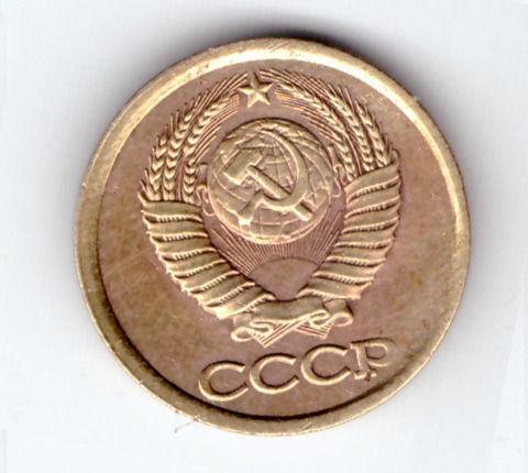 1 копейка 1990 года с браком (наплыв металла) VF