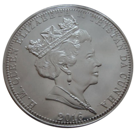 1 крона 2016 год. Перл Харбор 75 лет Рузвельт Корабль Флот. Вторая мировая война. Тристан-да-Кунья. Серебро с позолотой