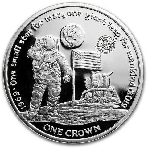 1 крона. Высадка на Луну 50 лет Космос Луноход. Остров Вознесения. 2019 год. PROOF