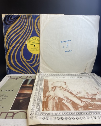 №1 Набор классической музыки из 10 виниловых пластинок 12 дюймов : С .Бах - "Музыкальное приношение", дирижёр Рудольф Баумгартнер; "Восемь маленьких прелюдий и фуг", Партиты на хоральную тему", орган Гарри Гродберг; Л.Бетховен - "9-я Симфония", дирижёр А. Гаук, симфонический оркестр Всесоюзного радио; увертюры к операм: "Фиделио", "Эгмонт", "Кориолан", дирижёр А. Мелик-Пашаев; Ф. Шуберт - "8-я Симфония", дирижёр А. Мелик-Пашаев; В. Моцарт - "Реквием", Симфонический оркестр Московской гос. филармонии, дирижёр А. Свешников; Ф. Шопен - Вальсы, фортепьяно Бэлла Давидович; К.М. Вебер - увертюры к опере "Абу Гассан", дирижёр Г. Рождественнский; П. И. Чайковский - "Письма"; Ф. Мендельсон - "Симфония № 3, Симфонический оркестр всесоюзного радио, дирижёр М. Шостакович; Д. Шостакович -"11-я Симфония", Гос. симф. орк. СССР, дирижёр Н. Рахлин. Виниловые пластинки 12 дюймов. Мелодия СССР. Присутствуют следы использования, 7 пластинок в наружных конвертах, 3 пластинки во внутренних конвертах, замятия и надрывы конвертов. Состояние на фото