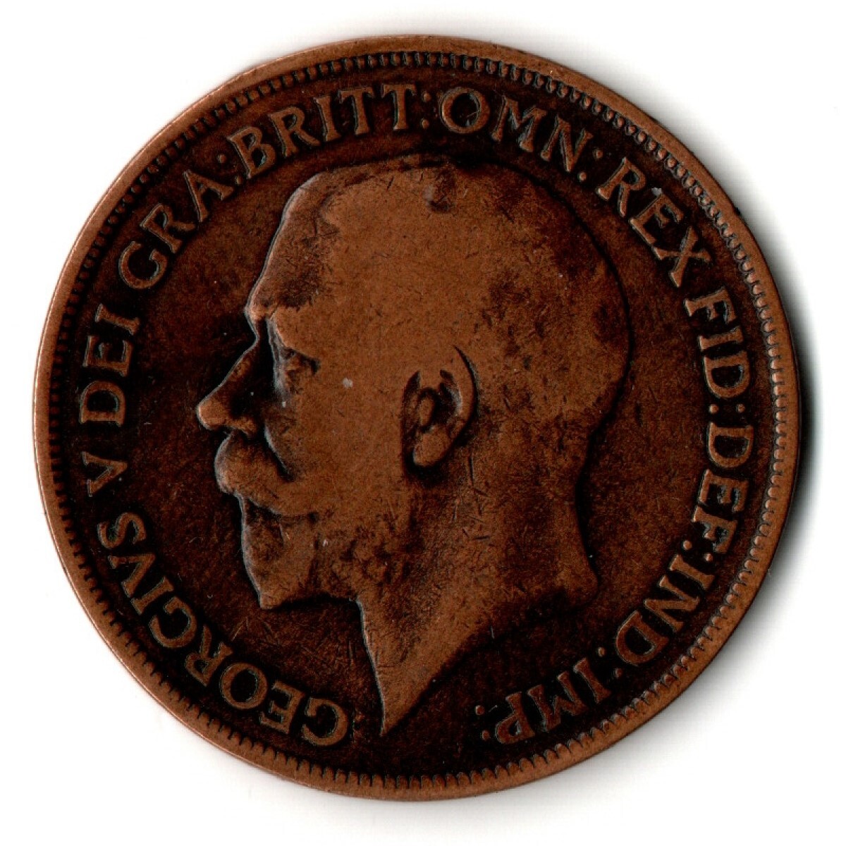 1 пенни 1918 год. Великобритания (Георг V). Бронза, диаметр 30.8 мм. VF