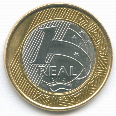 1 реал 2015 год. Бразилия. XXXI летние Олимпийские Игры в Рио - Баскетбол. Биметалл AUNC