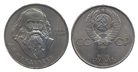1 рубль 150 лет со дня рождения Д.И. Менделеева 1984 г.