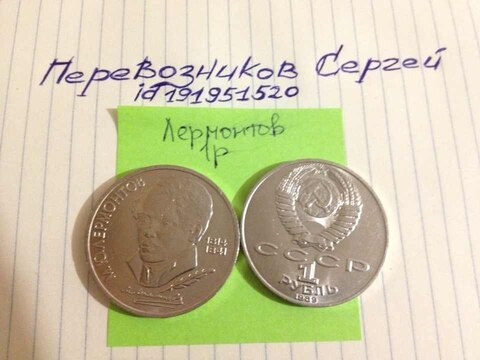 1 рубль 175 лет со дня рождения М.Ю. Лермонтова 1989 г.
