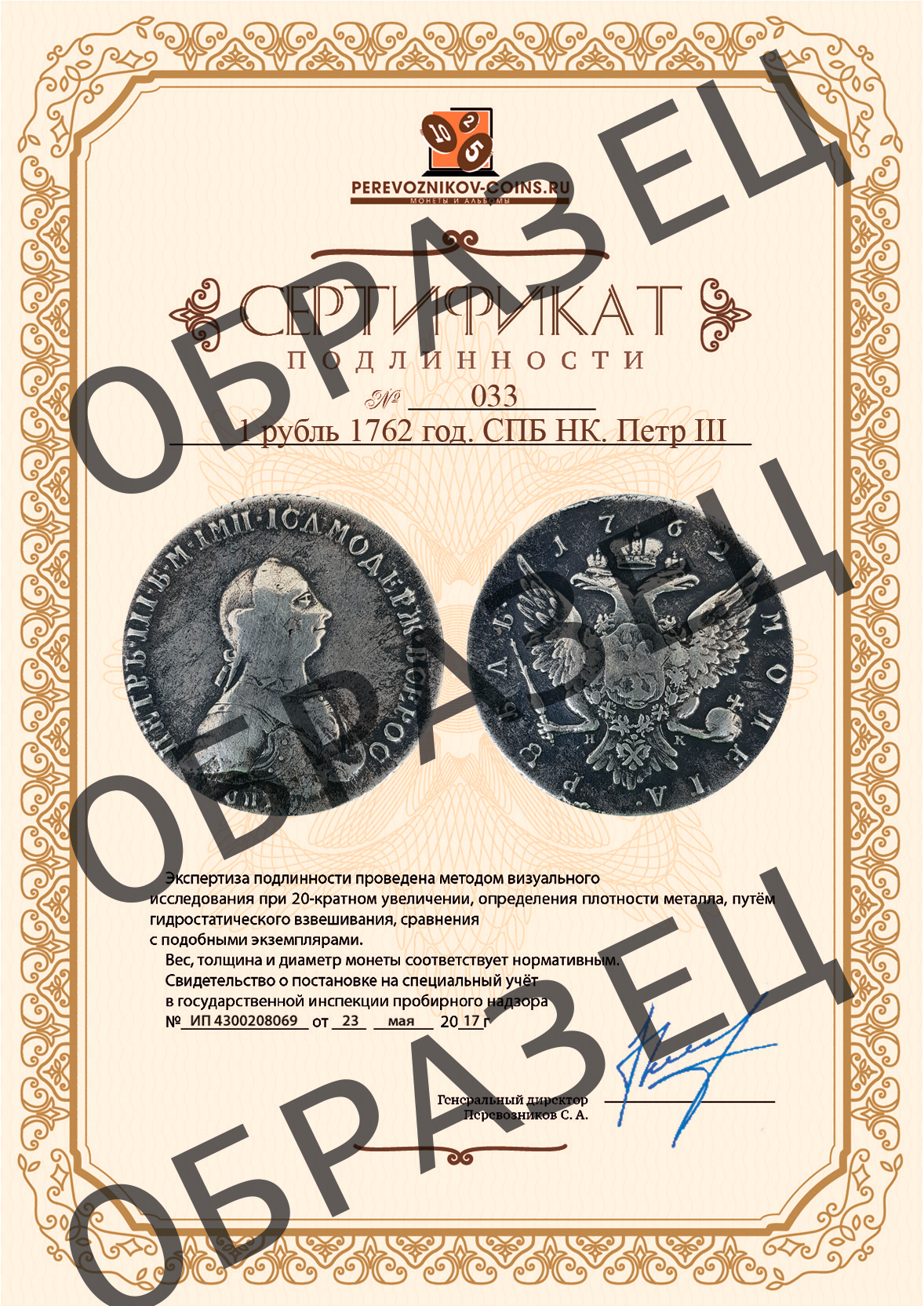 Монета 1 рубль 1762 года одна из немногих , которую император успел отчеканить за своё полугодовое царствование .