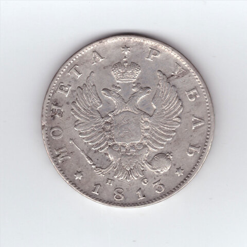 Аверс: В центре изображен Государственный Герб Российской империи - двуглавый орёл с поднятыми вверх распущенными крыльями. Головы которого увенчаны двумя коронами, третья, большая корона над ними. На груди орла расположен Московский герб - щит с изображением Георгия Победоносца, поражающего копьем дракона. Вокруг щита орденская цепь с орденом Св. Апостола Андрея Первозванного. В правой лапе орла – скипетр, в левой – держава. Под правой лапой – буква «П», под левой – буква «С». Инициалы минцмейстера Павла Ступицына. Слева от герба круговая надпись - «МОНЕТА», справа - «РУБЛЬ». Под инициалами — дата выпуска монеты «1813». Все три надписи разделены между собой тремя шестиконечными звёздами. По окружности канта имеются рельефные элементы, выполненные в виде зубцов.