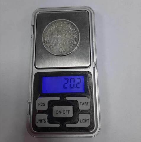 Реверс: В центре надпись в четыре строки: «ЧИСТАГО»│«СЕРЕБРА»│«4 ЗОЛОТН.»│«21 ДОЛЯ.». Над надписью - императорская корона. Под надписью - прямая черта, под ней - обозначение Санкт-Петербургского монетного двора «С.П.Б.». Вдоль канта, не доходя до короны, изображен венок из лавровой и дубовой ветви, которые в нижней части переплетены лентой. По окружности канта имеются рельефные элементы, выполненные в виде зубцов.