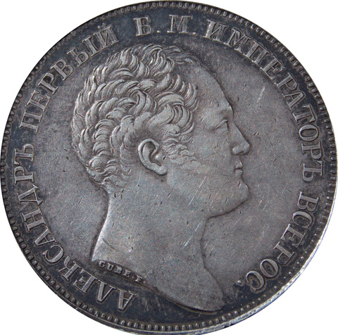 Стоит вспомнить, что и сам Александр, и его отец Павел, и Николай Павлович, по повелению которого чеканилась памятная монета, избегали размещать на монетах собственные портреты. Александр I, вначале заменив надпись на «государственная российская монета рубль», позже посчитал необходимой и достаточной для размещения на монетах информацией сведения об их весе — в принятых тогда золотниках и долях «чистаго серебра» или золота.