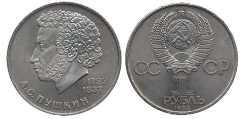 1 рубль 185 лет со дня рождения А. С. Пушкина 1984 г.