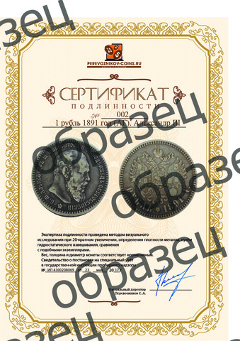 К данной монете прилагается сертификат подлиннности от компании perevoznikov-coins.