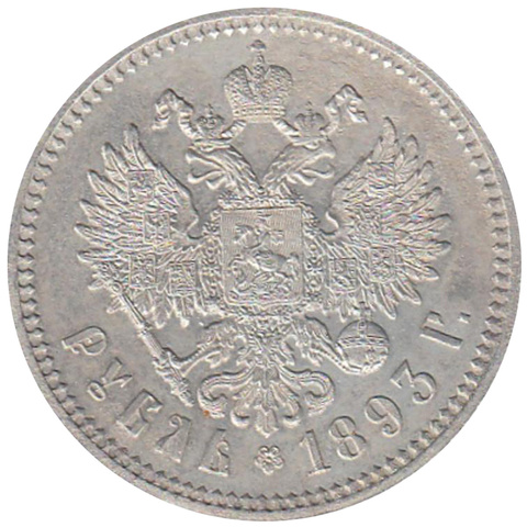 Аверс: в середине Малый Государственный Герб Российской империи, под ним вдоль края монеты, разделенные розеткой, номинал «РУБЛЬ» и год выпуска монеты «1893 Г.».