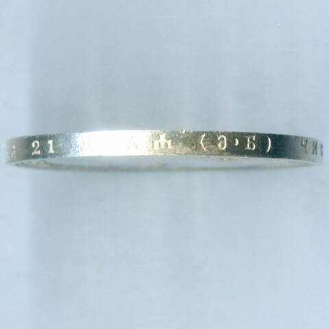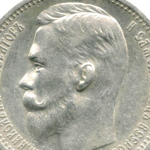 Аверс: В центре профильный портрет влево императора Николая II. Слева надпись «Б.М. НИКОЛАЙ II ИМПЕРАТОР», справа - «И САМОДЕРЖЕЦ ВСЕРОСС.». По окружности канта имеются рельефные элементы, выполненные в виде зубцов.