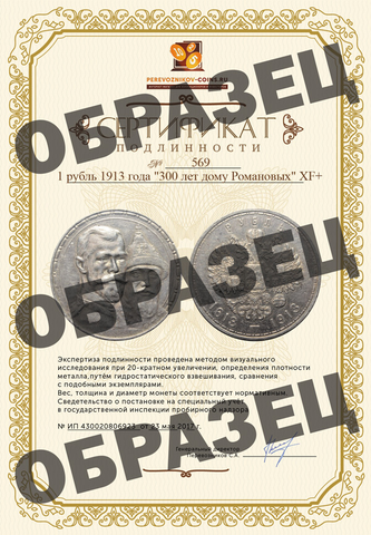 К данной монете прилагается сертификат подлиннности от компании perevoznikov-coins.