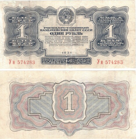 1 рубль 1934 г. (без подписи) F-VF